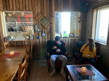 12:00 p.m. – we stopped at Efstidalur for ice cream and snacks. Notice below the cows in background for the milk!
