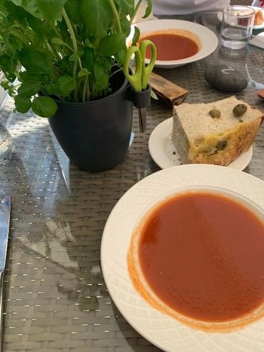 2:30 p.m. – We stopped at Friðheimar which is an amazing dining experience. Everything on the menu is made from tomatoes. The tomato soup was out of this world! While you wait for your meal, you can walk around the greenhouse to see how they grow their varieties of tomatoes. We even tried tomato ice cream while there! The ambiance on the patio is reminiscent of relaxing on an outdoor patio in Napa. It was perfection!